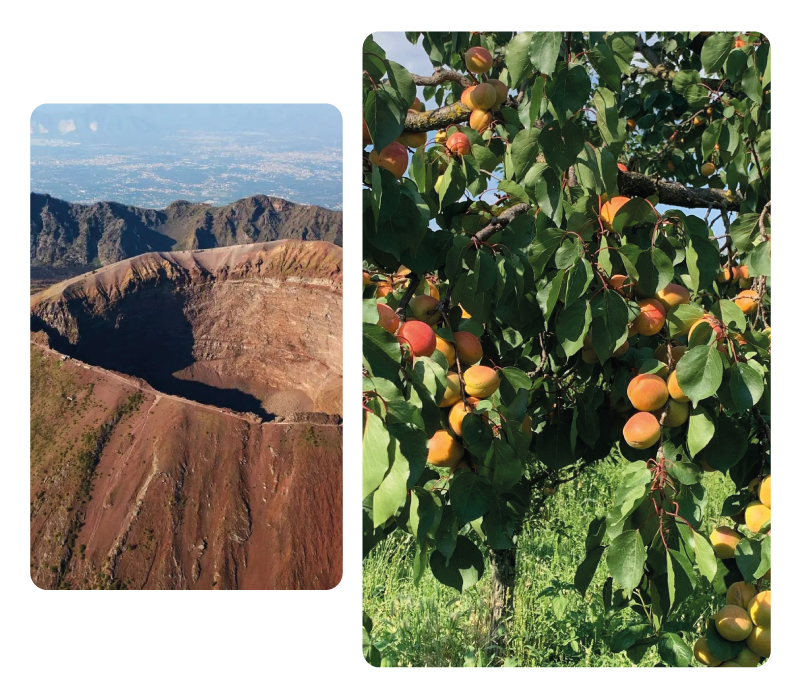 Il Vesuvio non è solo uno dei vulcani più famosi al mondo, ma anche un ecosistema che ha dato vita a una straordinaria biodiversità. Il terreno scuro e soffice, risultato di secoli di attività vulcanica, nutre le piante con sostanze preziose, mentre lo sbalzo termico tra il giorno e la notte favorisce una maturazione ottimale dei frutti. Questo equilibrio naturale conferisce alla Pellecchiella il suo sapore dolce e intenso, con un grado zuccherino superiore rispetto alle altre varietà.